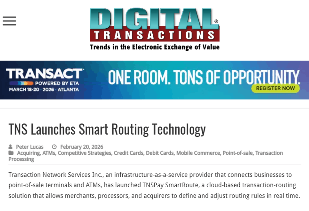 Digital Transactions reports on the launch of TNSPay SmartRoute.